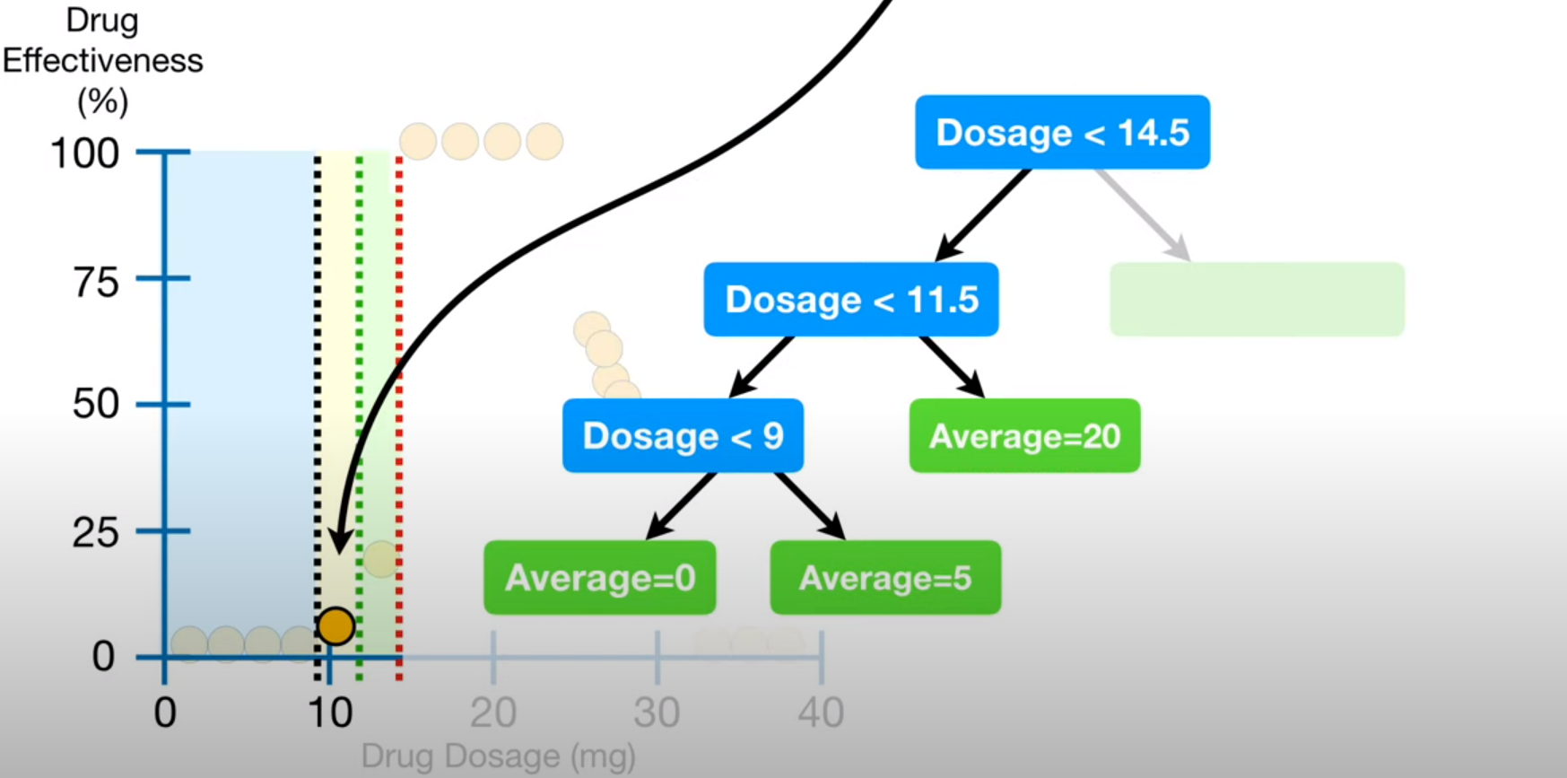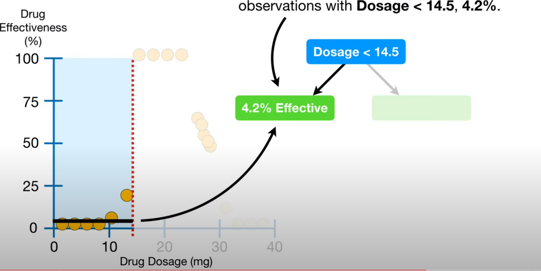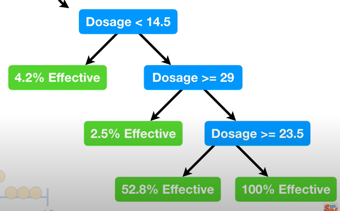 그말인 즉슨 dosage < 14.5라는 질문이 첫번째에 와야한다는 의미이다.