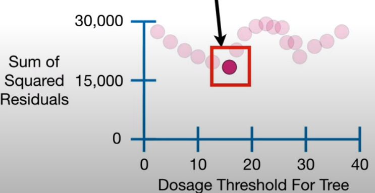 이런식으로 dosage변수들 사이의 값을 threshold로 하여 모든 ssr을계산사면 다음과같다 .