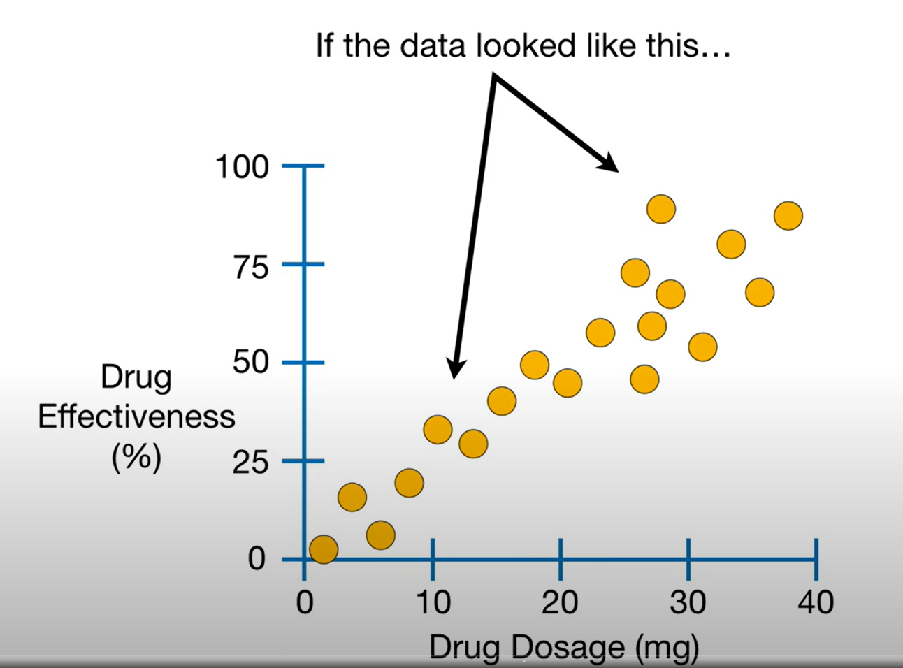 drug dosage변수와 drug effectiveness(target)의 그래프를 보고 가장 낮은 drug dosage값 두가지에 집중해보자