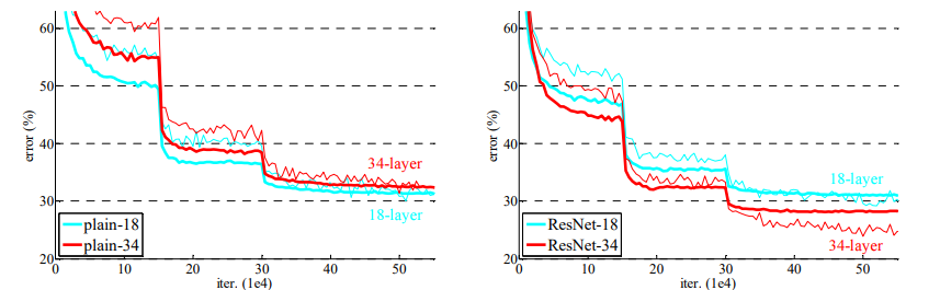우측 resnet의 경우는 레이어가 깊어짐에도 loss가 더 낮은것을 확인 가능하다